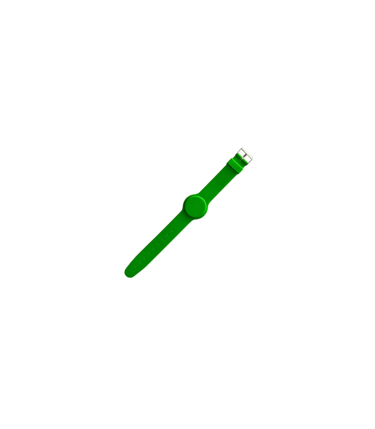 Bratara de proximitate din silicon, Mifare 13.56 MHz. Catarama inox pentru utilizarea in piscine sau bazine cu apa sarata.