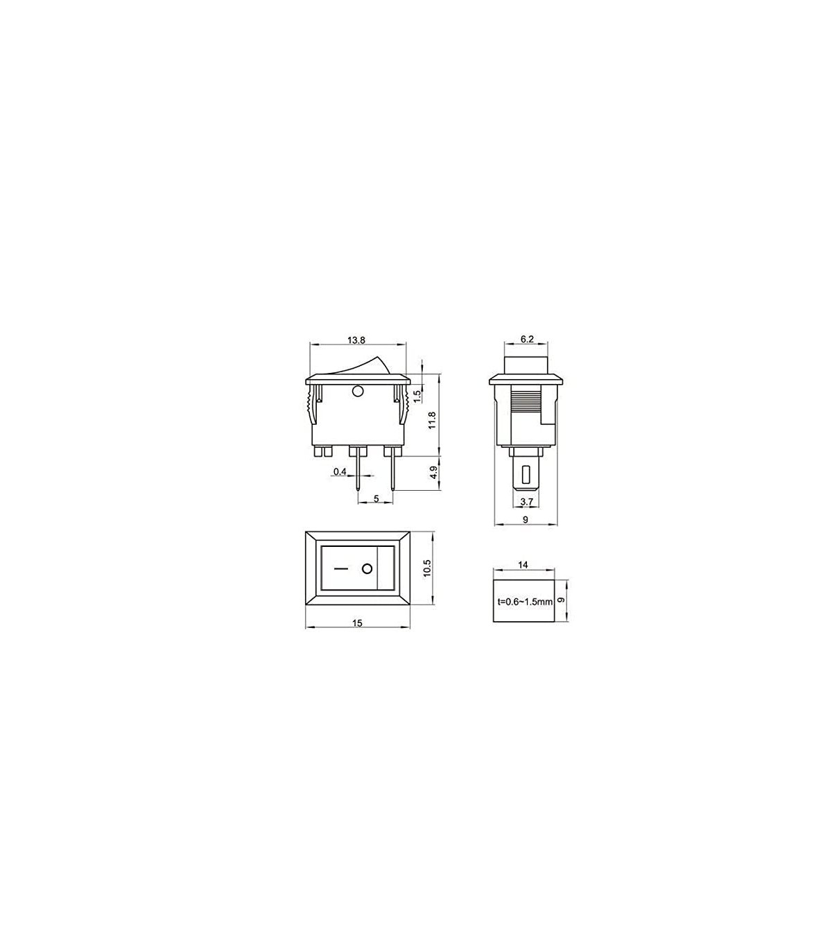 Buton Rocker KCD11 cu 2 pini si tensiune de evaluare AC 250V 3A.