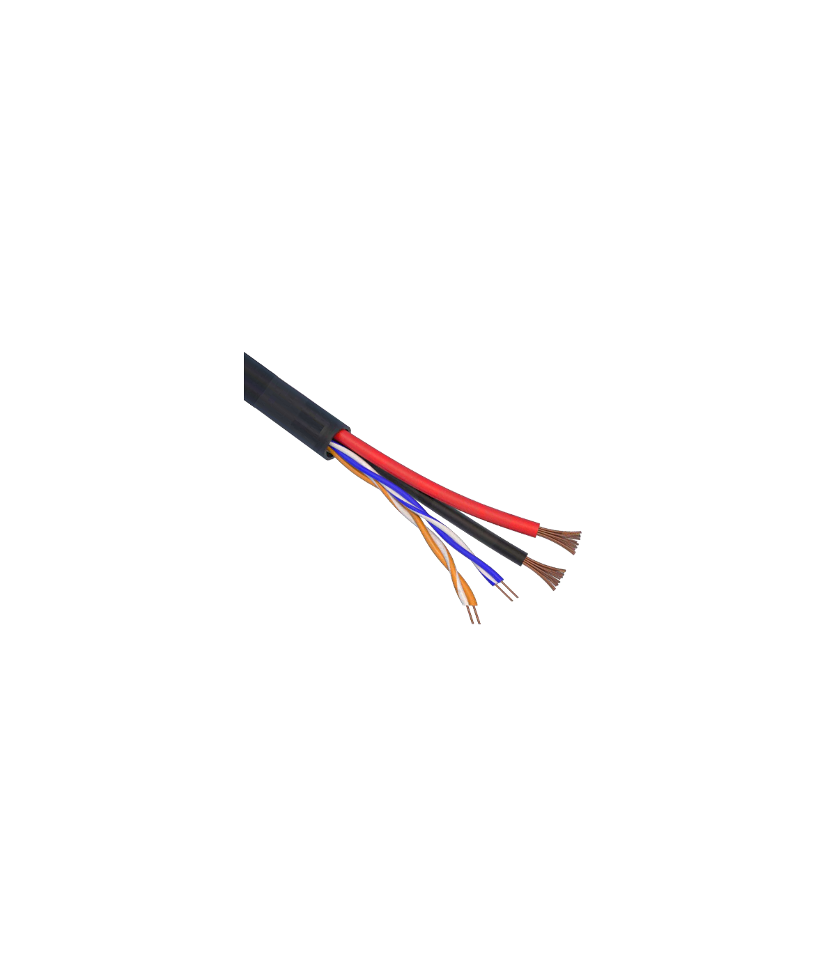 Cablu Hybrid UTP 2 perechi 2X2X24AWG + alimentare 2x1.5, Cupru 100%, utilizat la transportul semnnalului CCTV sau date si alimentare pe distante mari.