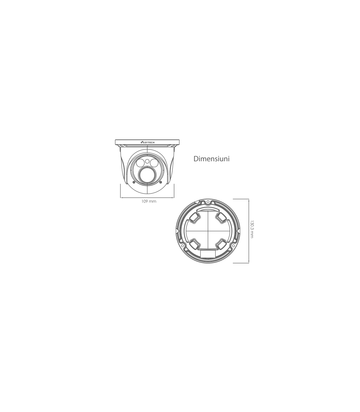 Montajul se poate face atat la interior cat si la exterior, avand led-uri IR pentru o vizualizare pe timp de noapte de pana la 30 metri, echipata cu lentila varifocala de 2.8~12 mm care ofera un unghi de vizualizare cuprins intre 96° ~ 35°.
