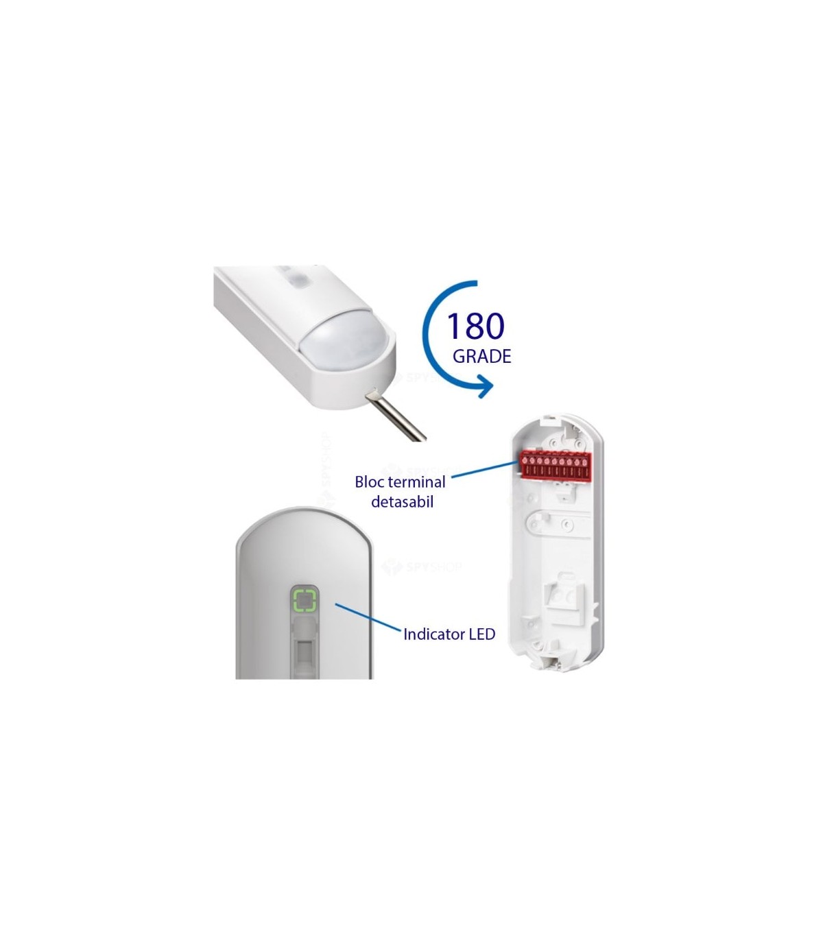 - Unghi detectie: 85° cu lentila normala, 5° cu lentila coridor