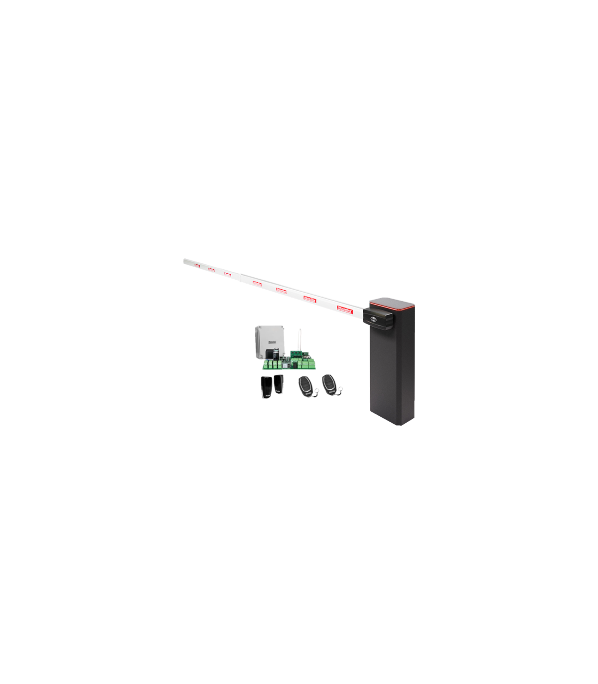 TURBO-4-KIT de la Motorline, este un kit de bariera echipat complet, din otel galvanizat, avand un design elegant. Bratul barierei este din aluminiu, fiind extensibil de la 2.4 pana la 4 metri (telescopic). Viteza de deschidere rapida, de doar 3 secunde si mod de utilizare INTENSIV. Corp bariera cu montaj universal, stanga - dreapta.