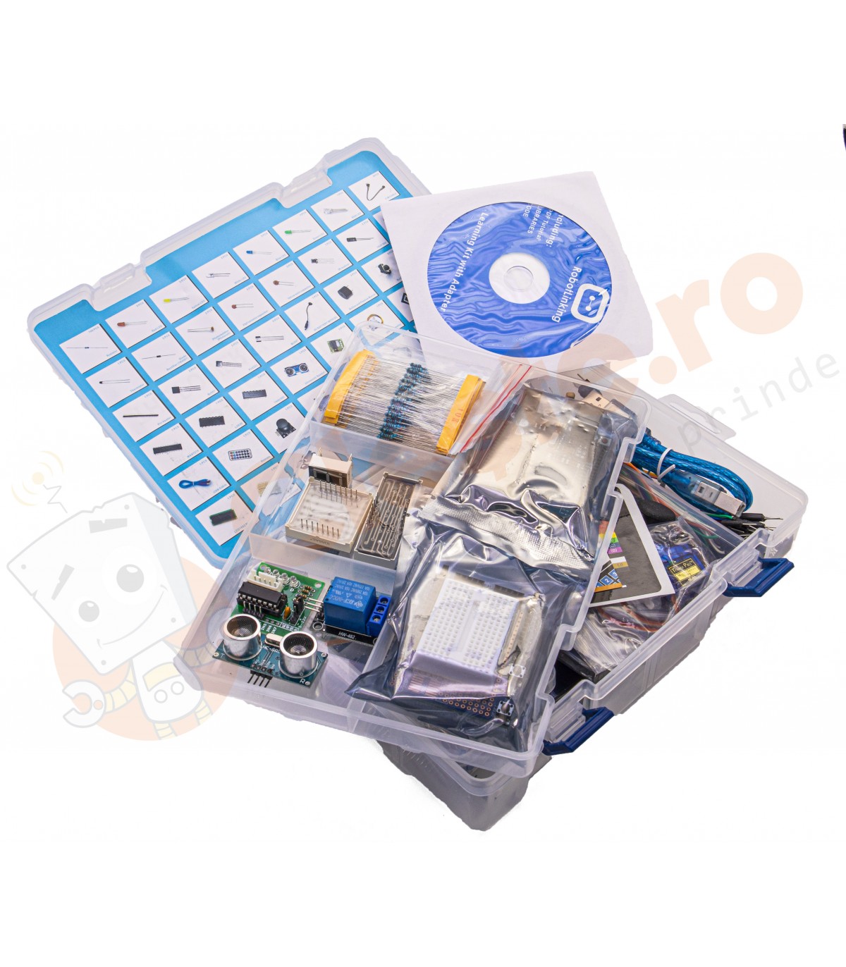 Acest kit o să vă treacă prin elementele de bază ale lumii Arduino într-un mod practic. Veți învăța prin construirea mai multor proiecte creative. Kitul include o selecție din cele mai comune și utile componente electronice. Pornind de la elementele de bază ale electronicii, până la proiecte mai complexe, kitul vă va ajuta să automatizați casa cu ajutorul senzorilor și al dispozitivelor de acționare.