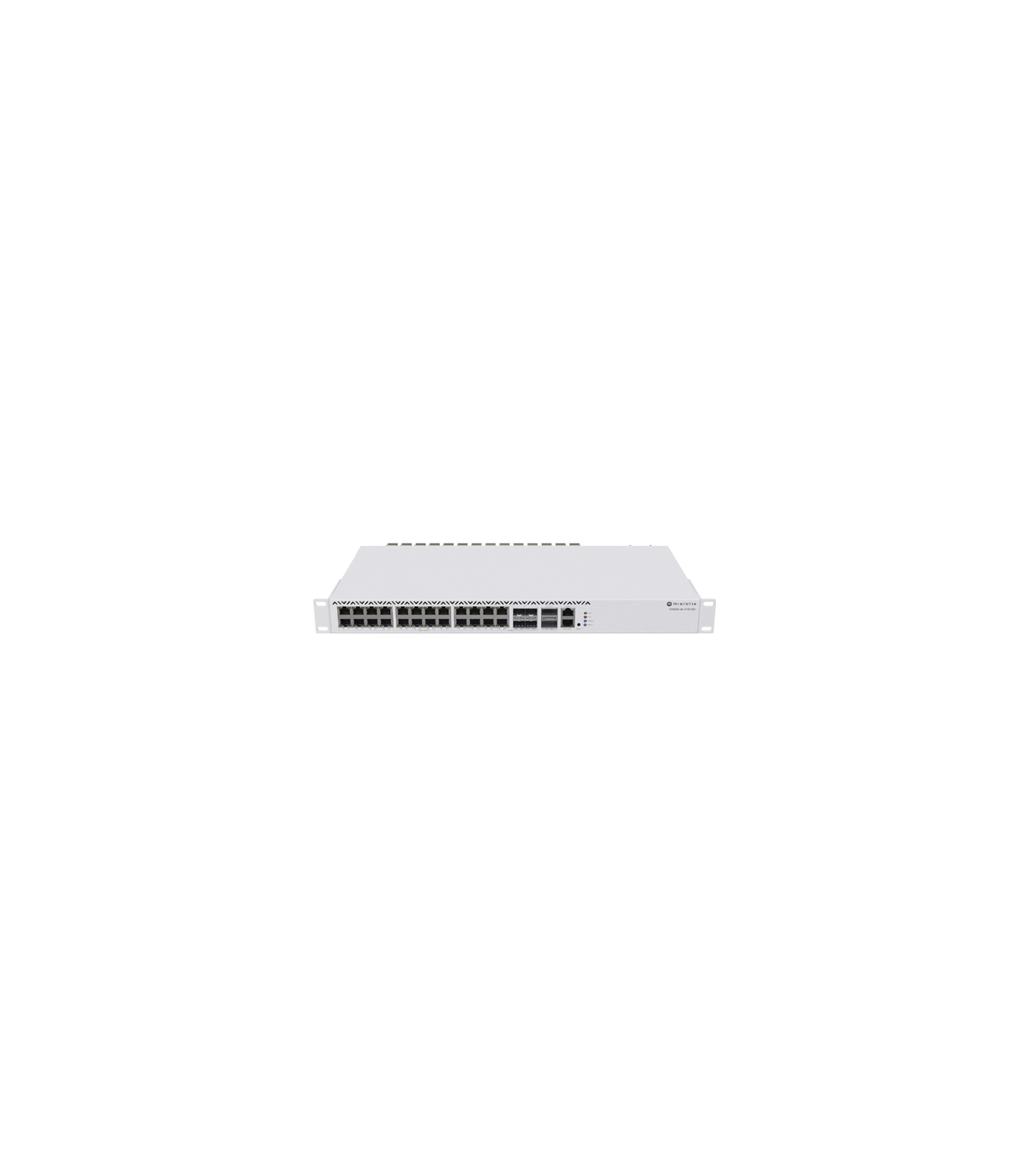 CRS326-4C+20G+2Q+RM dispune de 20 porturi Ethernet 2.5 Gigabit, 4 porturi COMBO care pot fi folosite ca 4 porturi Ethernet 2.5 Gigabit suplimentar sau ca interfete 10G SFP+ si 2 porturi QSFP+ de 40 Gigabit pentru conectivitate ultra-rapida prin fibra. Puternicul switch-chip Marvell Prestera care are un procesor dedicat, poate face fata tuturor sarcinilor de zi cu zi: VLAN-uri, frame-uri Jumbo, link aggregation, reguli ACL, chiar si unele rutari Layer3. Switch-ul are doua surse de alimentare redundante si un port suplimentar de 100 Mbps dedicat functiilor de management. In plus acesta poate fi montat in rack-uri 19'.