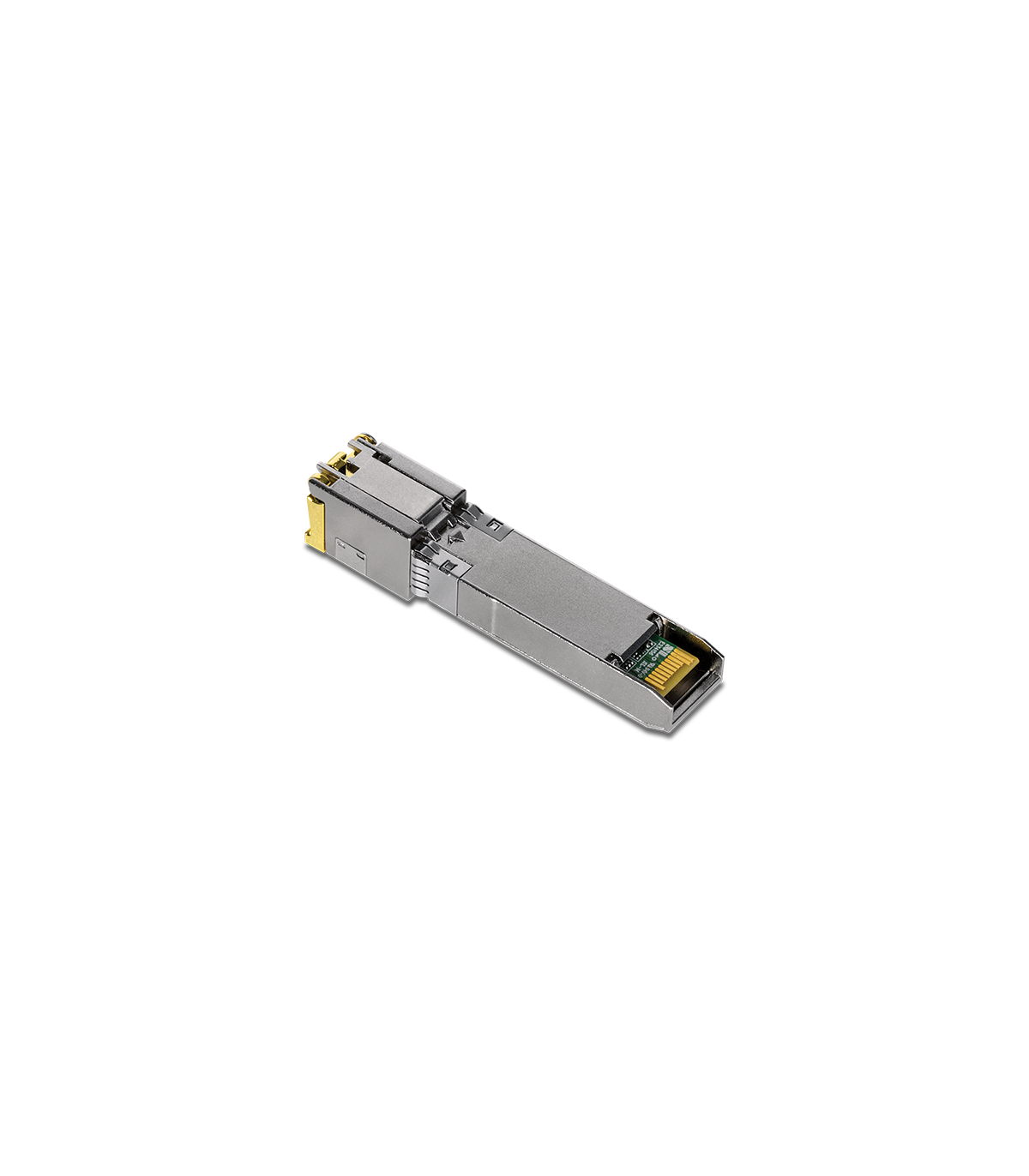 TEG-10GBRJ este un modul RJ45 10G SFP+ din cupru ce transforma un slot SFP+ standard intr-un port RJ45 multi-gigabit, pentru o conectivitate de mare viteza. Modulul de 10G functioneaza cu slot-uri SFP+ intalnite in mod obisnuit la switch-uri cat si la convertoarele media. Interferente electromagnetice scazute (EMI) datorita materialulu folosit in constructie. Suporta monitorizarea si diagnosticarea digitala (DDM).