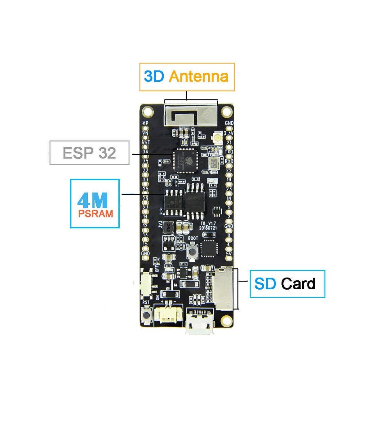 Ttgo T8 V1.7 Esp32 4Mb Psram Tf Card Antenă 3D WiFi și Bluetooth Esp32-Wrover Micropython