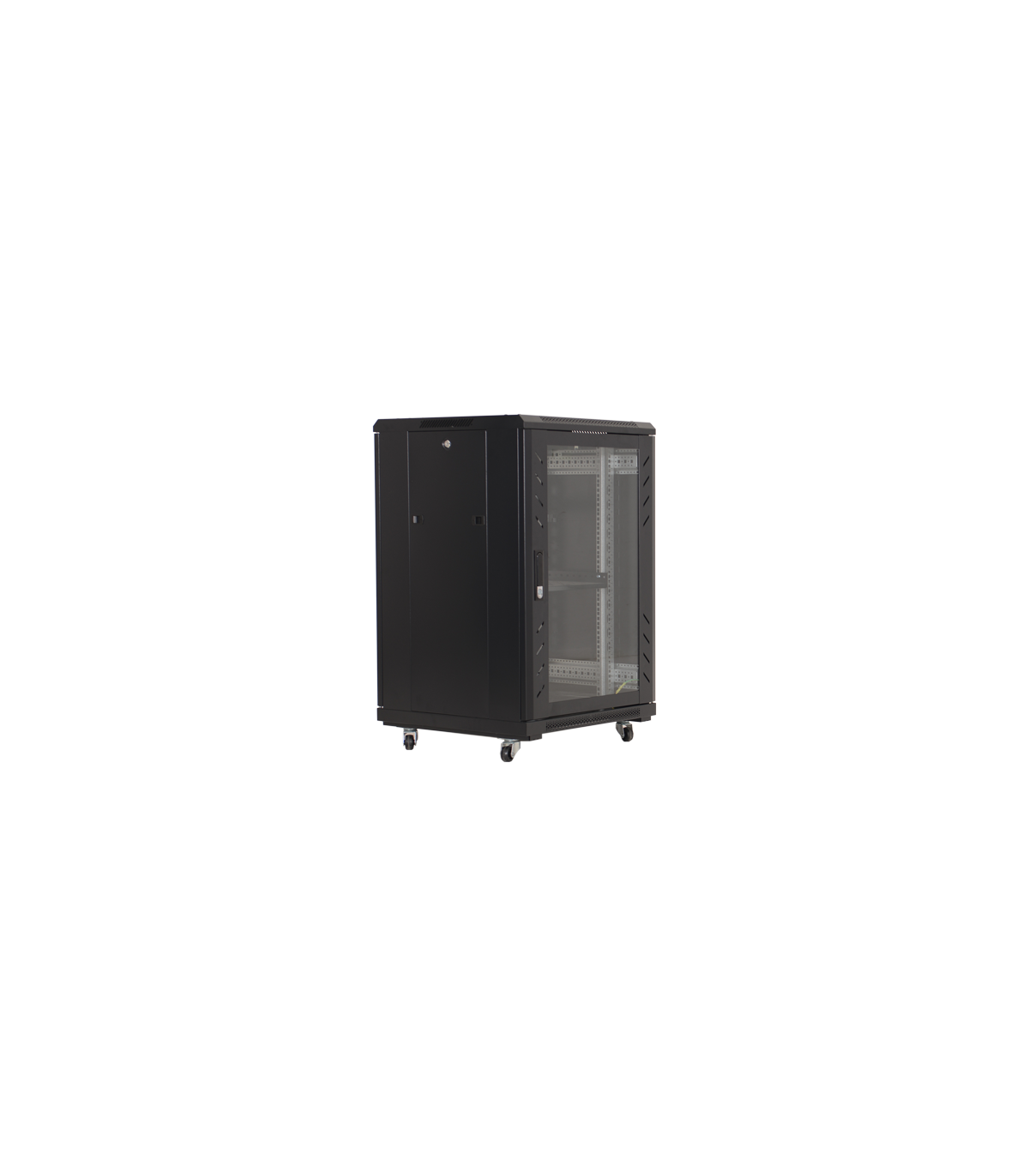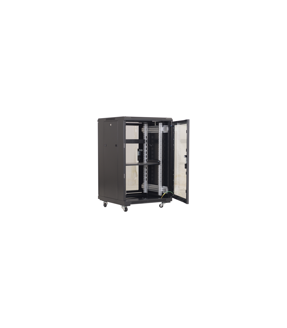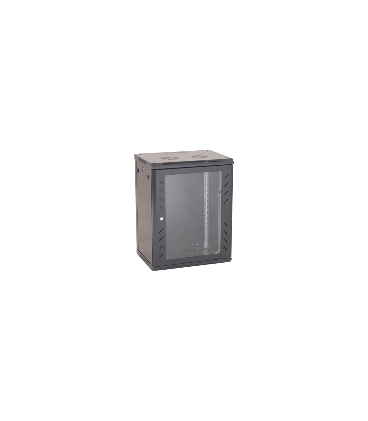 Cabinet metalic cu montare pe perete ce permite instalarea echipamentelor standard dar si a celor pentru CCTV, CATV prin utilizarea de rafturi aditionale.