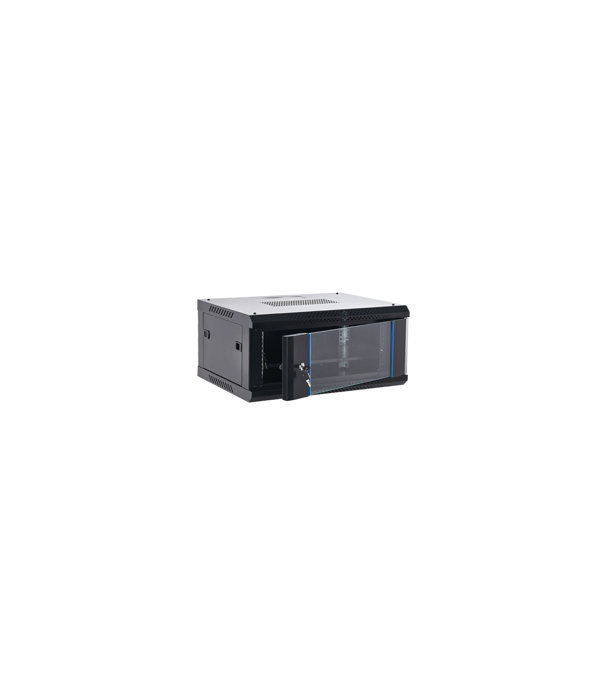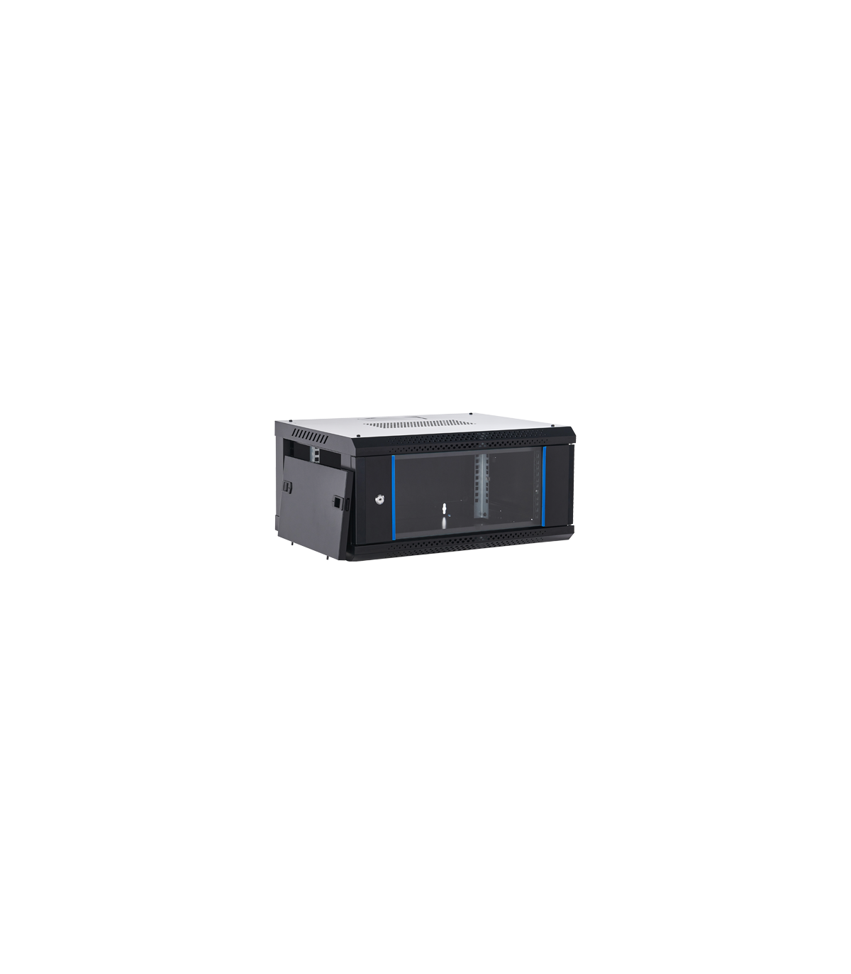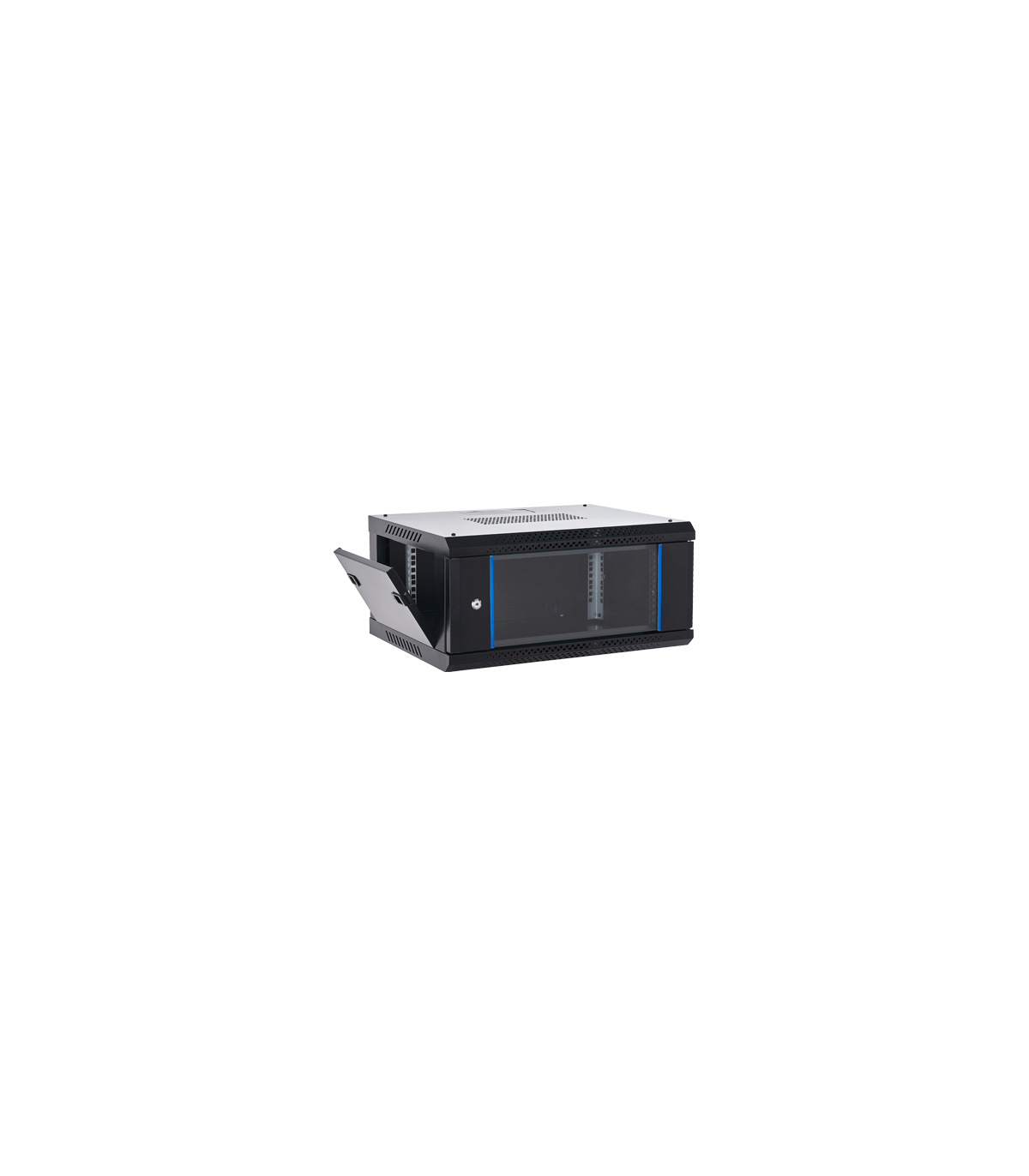 Cabinet metalic din seria economica, neasamblat cu montare pe perete ce permite instalarea echipamentelor standard 19' dar si a celor pentru curenti slabi: CCTV, CATV, efractie, interfonie, smart home, etc. prin utilizarea de rafturi aditionale.