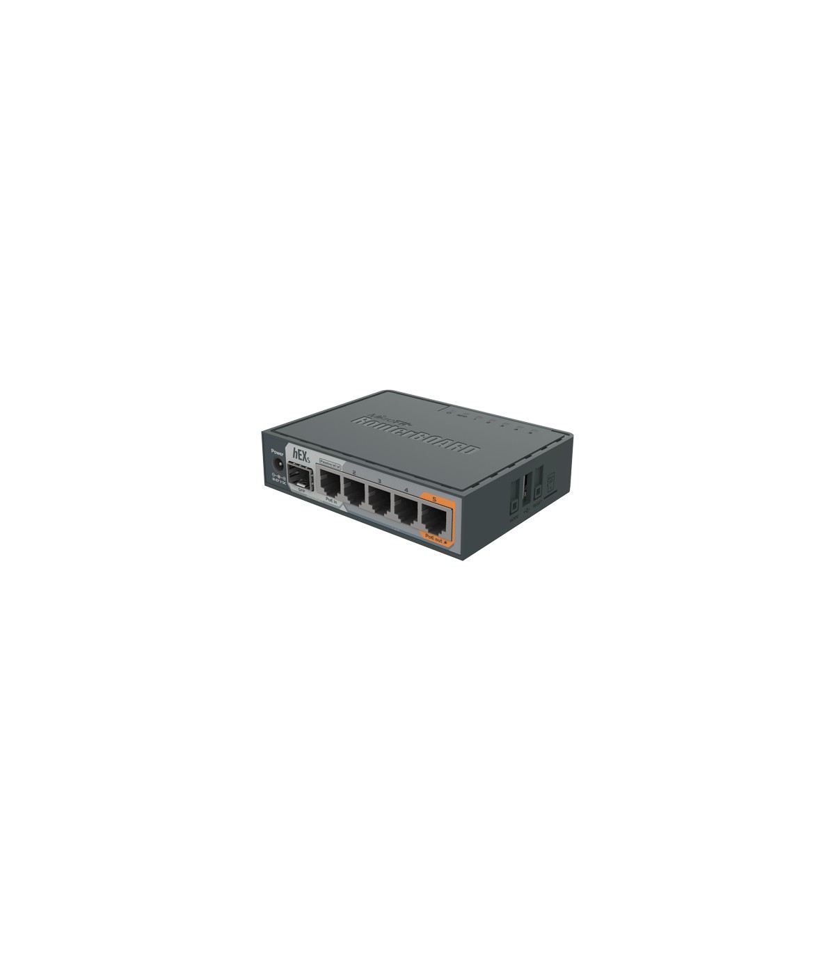 hEX S este un router Gigabit Ethernet cu cinci porturi pentru locatiile unde nu este necesara conectivitatea wireless. In comparatie cu hEX, hEX S are un port SFP de 1,25 Gbit/s pentru conexiune cu fibra optica si o iesire PoE pe ultimul port. Este accesibil, mic si usor de utilizat, este echipat cu un procesor dual core foarte puternic de 880 MHz si 256 MB RAM, capabil de toate configuratiile avansate acceptate de RouterOS. Dispozitivul are o iesire USB 2.0 pentru partajarea de continut (fisiere video, poze, date). Are criptare hardware IPsec (~ 470 Mbps) si suporta pachetul server Dude. Slotul microSD ofera o viteza imbunatatita la citire/scriere pentru stocarea fisierelor si pentru Dude.