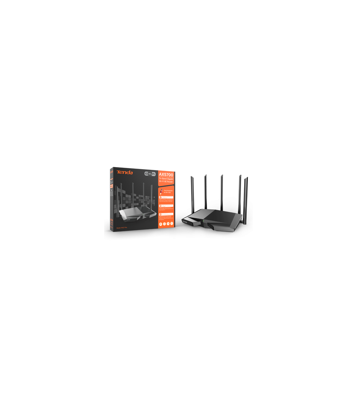 Router Wi-Fi 6e, AX5700 TriBand 2.4/5GHz/6GHz, 861+2402+2402 Mbps, 5x6dBi, 4 x Gigabit - TENDA TND-RX27-PRO