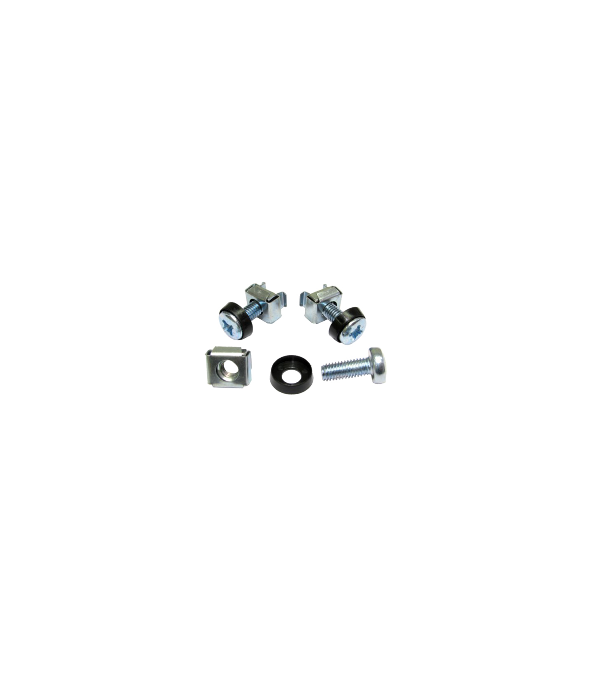 Punga cu 100 suruburi si piulite pentru montarea echipamentelor si accesoriilor in rack-uri.