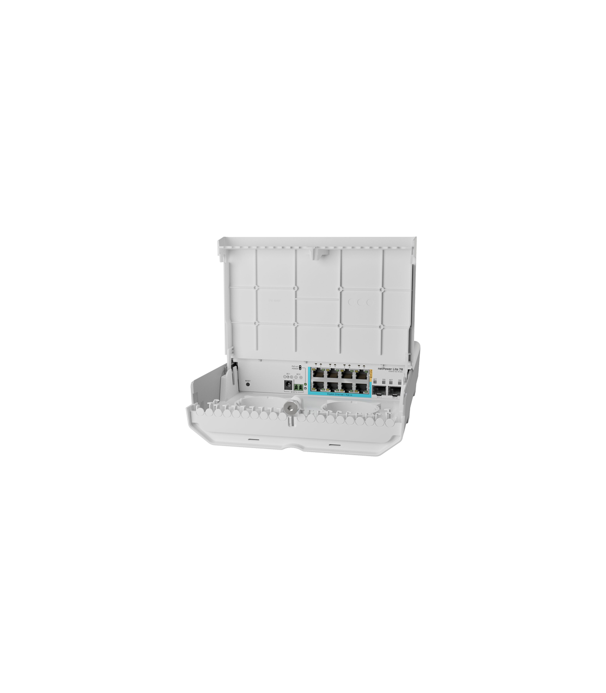 Switch-ul netPower Lite 7R inlocuieste statiile GPON si splitterele optice scumpe. Acest switch aduce viteza si versatilitatea retelei pe fibra optica in timp ce utilizeaza avantajele Ethernet. Este usor de implementat, cu costuri reduse, astfel incat orice ISP poate furniza serviciul de Internet locuintelor individuale. Are multe multe optiuni de alimentare. netPower Lite 7R are 7 porturi PoE inversate. netPower poate extrage puterea necesara chiar si de la un singur client! Portul Ethernet nr 8 poate alimenta alte dispozitive capabile PoE. Exista si o mufa DC si un terminal cu 2 pini pentru alimentarea alternativa. Carcasa exterioara va permite sa instalati acest switch in orice locatie: mansarde umede, casele ascensoarelor, stalpi sau turnuri. netPower Lite 7R are o latime de banda de 28 Gbps, o capacitate de comutare de 56 Gbps si o rata de redirectionare de 41,7 Mpps.