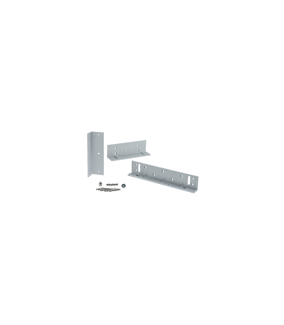 Electromagnetul se monteaza deasupra usii, in interior, folosind suportul L. Contraplaca se monteaza pe usa, la nivelul electromagnetului, folosind suportul Z.