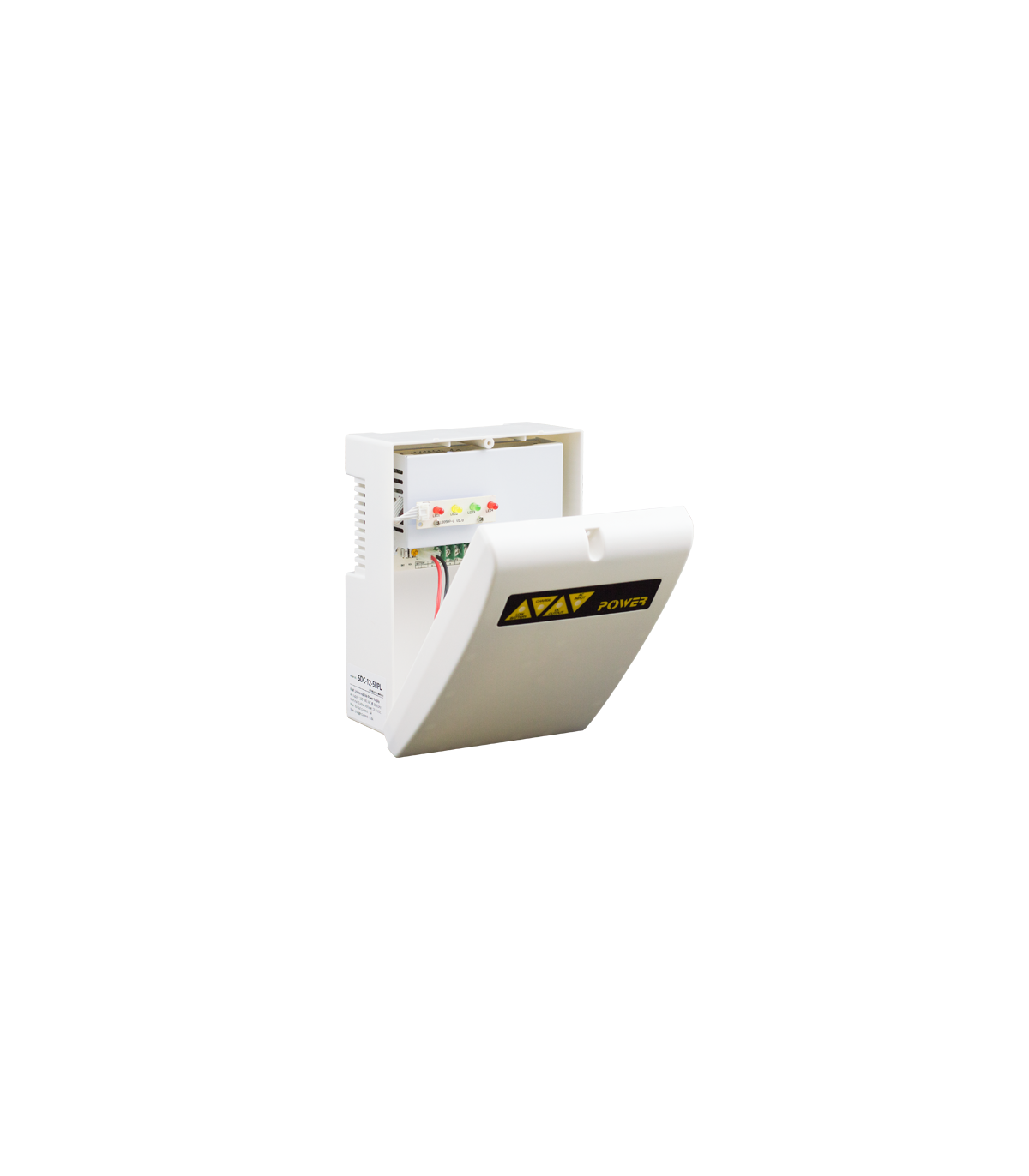 Sursa de alimentare CCTV 12V/5A cu back-up in carcasa plastic, posibilitate adaugare acumulator de 12V/7Ah. Eficienta: 82% / <100 mV. Sursa de alimentare dispune de protectie la: scurt circuit, supratensiune, descarcare electrica. Prevazuta cu indicator LED pentru: prezenta tensiune retea/ prezenta tensiune DC iesire / incarcare acumulator /defect acumulator.