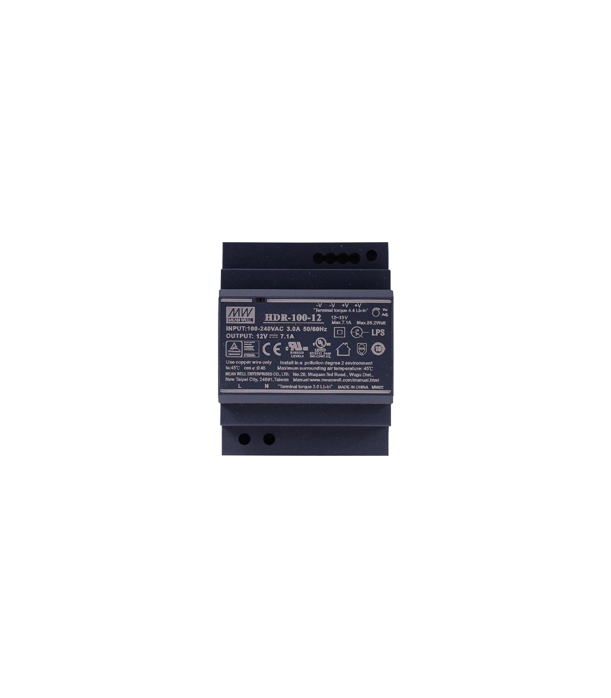 Sursa de alimentare in comutatie MeanWell reglabila intre 12 ~ 13V, si un curent maxim de pana la 7.1A (85.2W), sina DIN.
