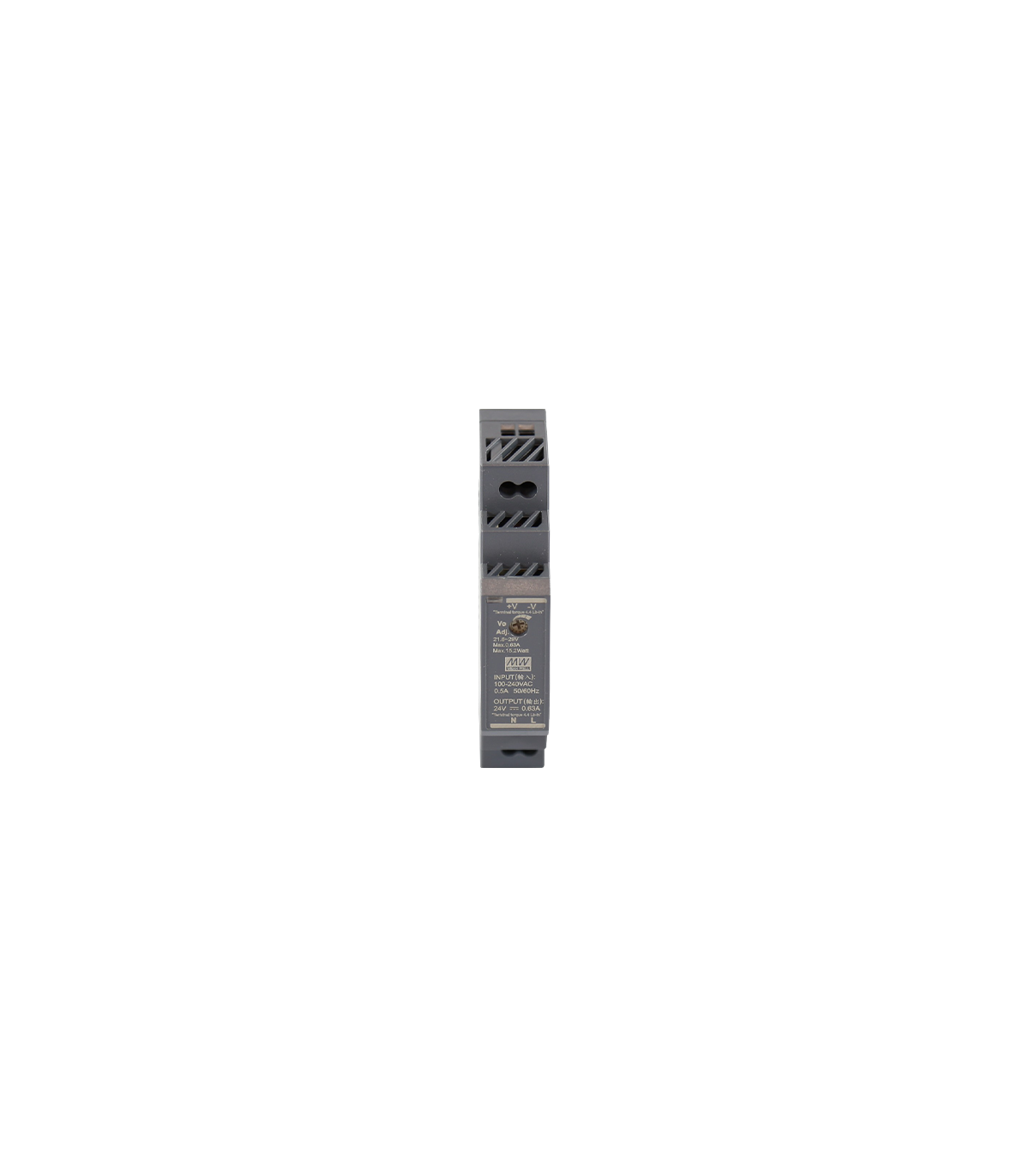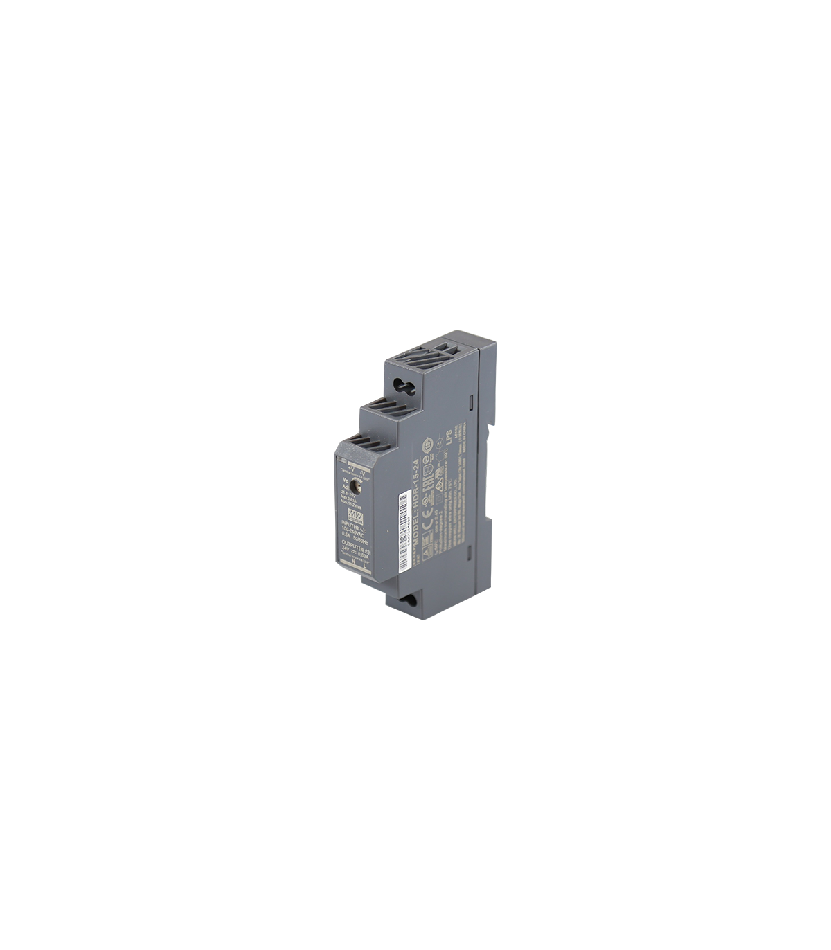 Sursa de alimentare in comutatie MeanWell reglabila intre 21.6 ~ 29V, si un curent maxim de pana la 0.63A (15.2W), sina DIN.