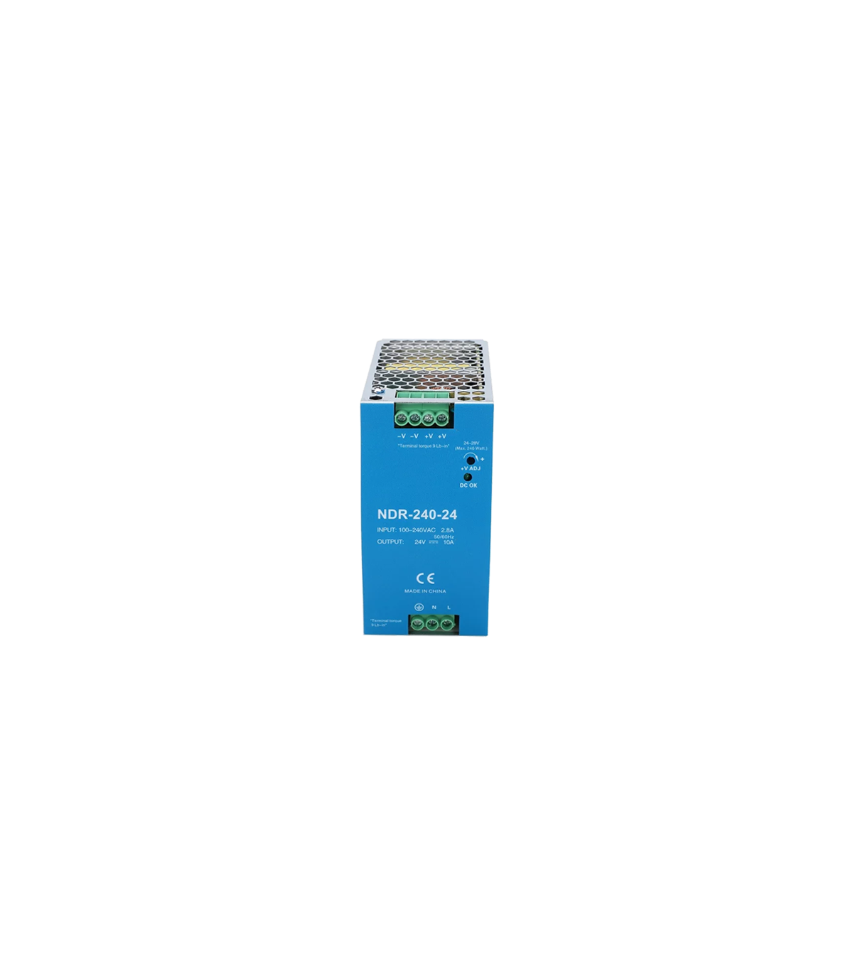 Sursa de alimentare in comutatie MeanWell reglabila intre 24 ~ 28V si un curent maxim de pana la 10A, 240W, sina DIN.