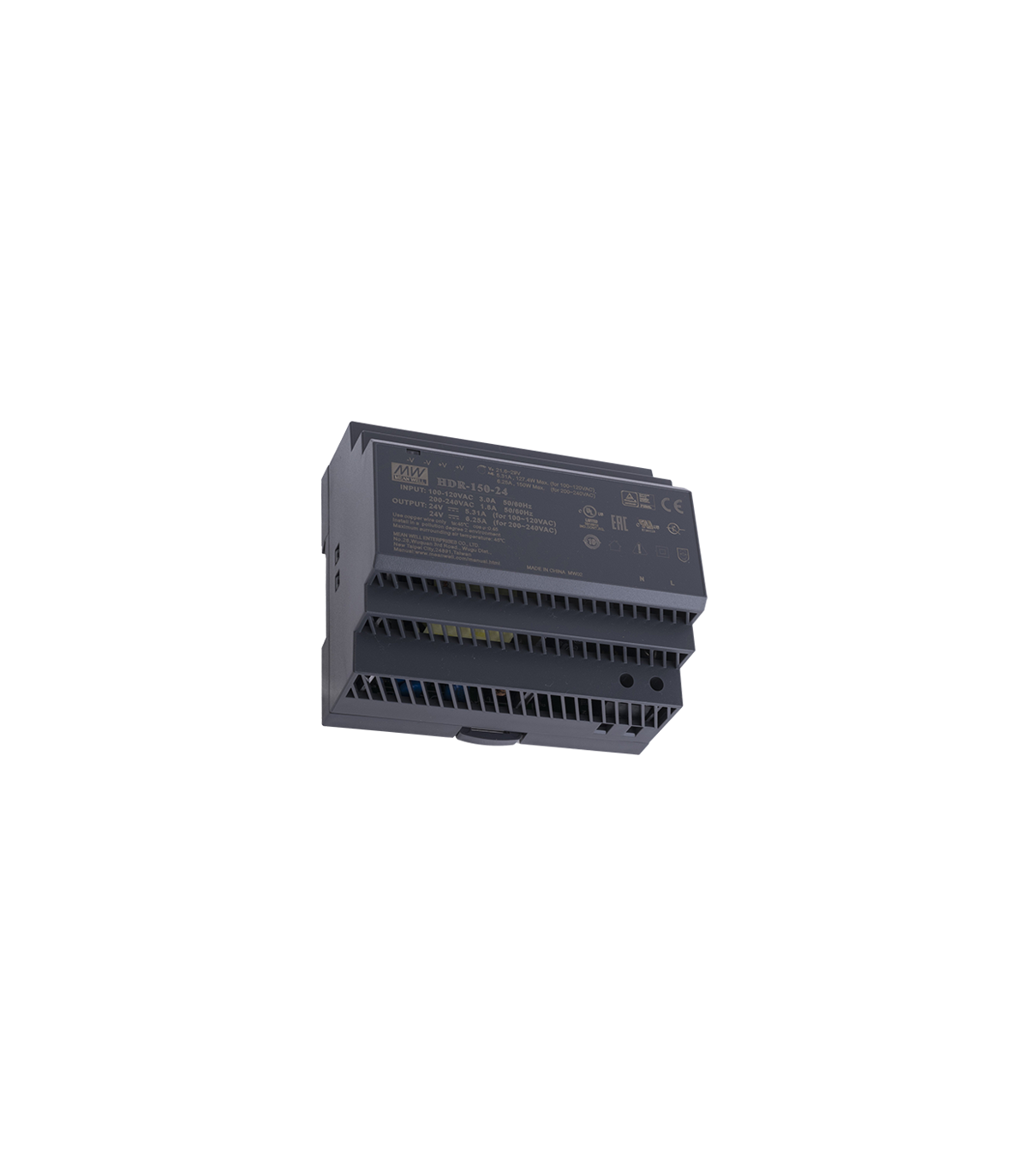 Sursa de alimentare in comutatie MeanWell reglabila intre 21.6 ~ 29V, si un curent maxim de pana la 6.25A, 150W, sina DIN.