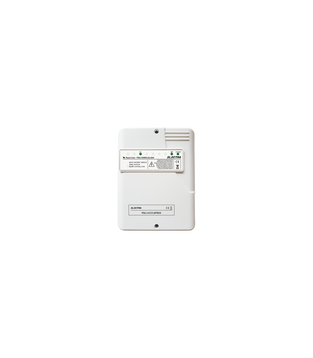 Sursa de alimentare in comutatie cu spatiu pentru acumulatori, pentru orice instalatie VIDEO & AUDIO si control acces, tensiune de alimentare 110 ... 230 Vc.a., tensiune de iesire U = 14 Vcc / 2.5 A, protectie la fluctuatii de tensiune pe retea, protectie la scurtcircuit.
