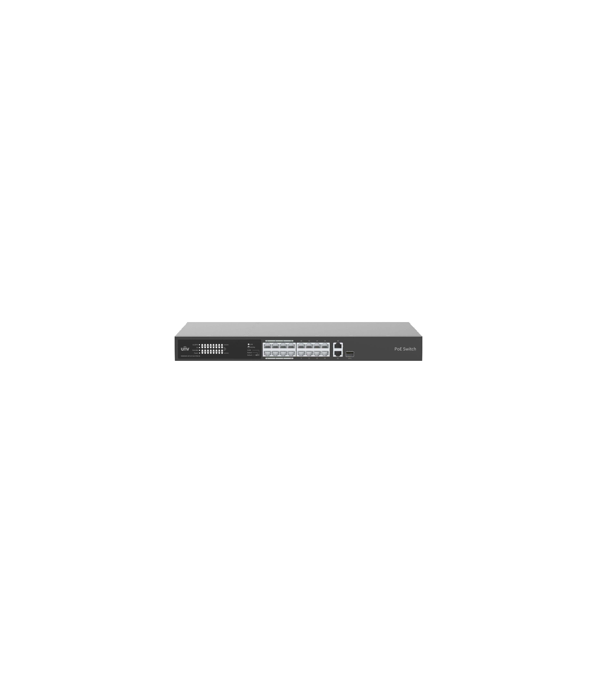 Switch-ul PoE NSW2020-16T1GT1GC-POE-IN este un echipament special conceput pentru sisteme de supraveghere IP, ce permite transferul de date cu viteze de 10/100 Mbps si dispune de 16 porturi PoE, un port Gigaethernet (1000Mbps) si un port Combo (1000Mbps).