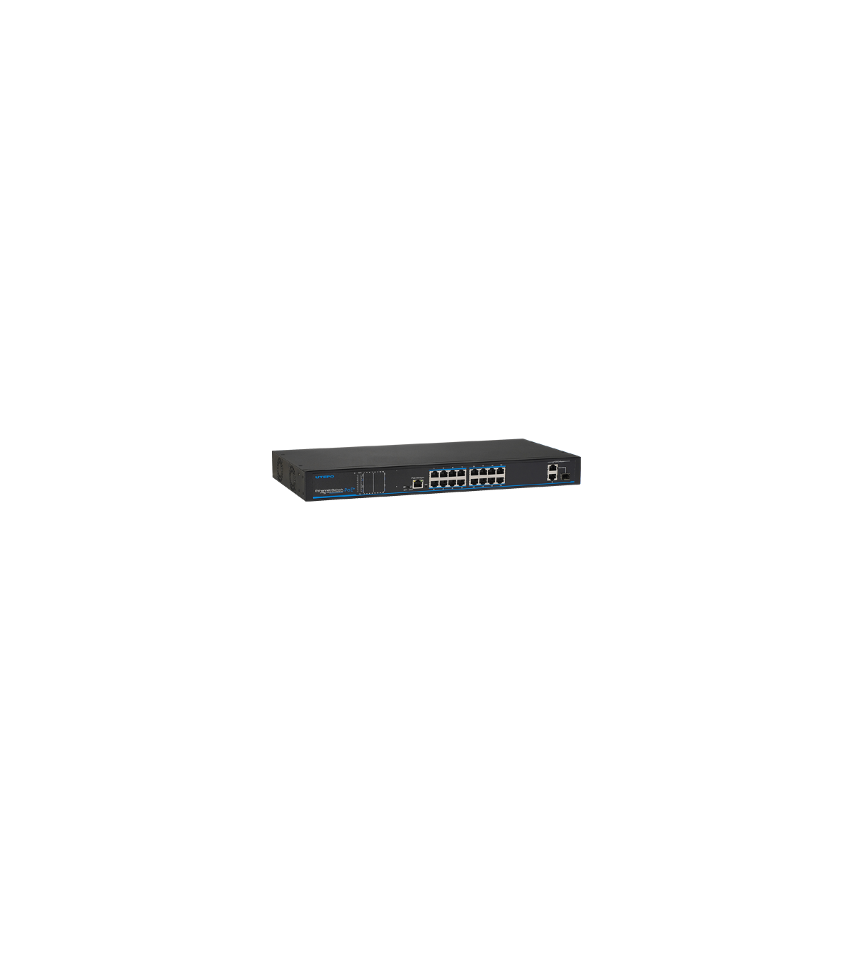 Switch-ul dispune de o putere totala PoE de 300W (18W/port dar nu mai mult de maxim 30W/port). Protectie ridicata la descarcari electrice, anti-interferente si tensiune electrostatica. Carcasa 1U echipata pentru montare rakabila.