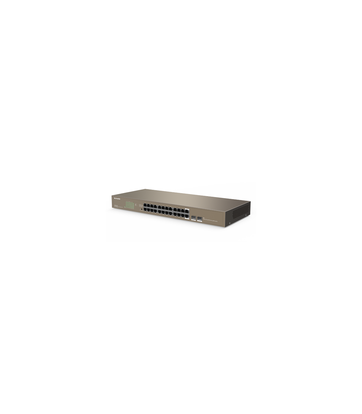 TND-TEG1024F este un switch cu 24 de porturi RJ45 si 2 porturi SFP Gigabit racabil de la Tenda usor de folosit, asigura costuri reduse, ce poate fi folosit pentru retele de supraveghere IP, retele de birouri mici sau medii. Datorita celor doua porturi SFP Combo, switch-ul poate transmite date pe distante lungi de pana la 20 Km. TND-TEG1024F ofera, de asemenea, o rata de date în full duplex de pana la 2000 Mbps, asigurand transmiterea rapida a fisierelor mari si redarea continua a videoclipurilor. Dispune de un circuit profesional de protectie impotriva descarcarilor electrice de 6 kV atat pentru toate porturile RJ45 cat si pentru modulul de alimentare. Se poate schimba modul de utilizare: standard (mod implicit) / controlul fluxului dezactivat / agregarea legaturilor si a port-urilor VLAN, astfel potrivindu-se mai multor tipuri de retele.