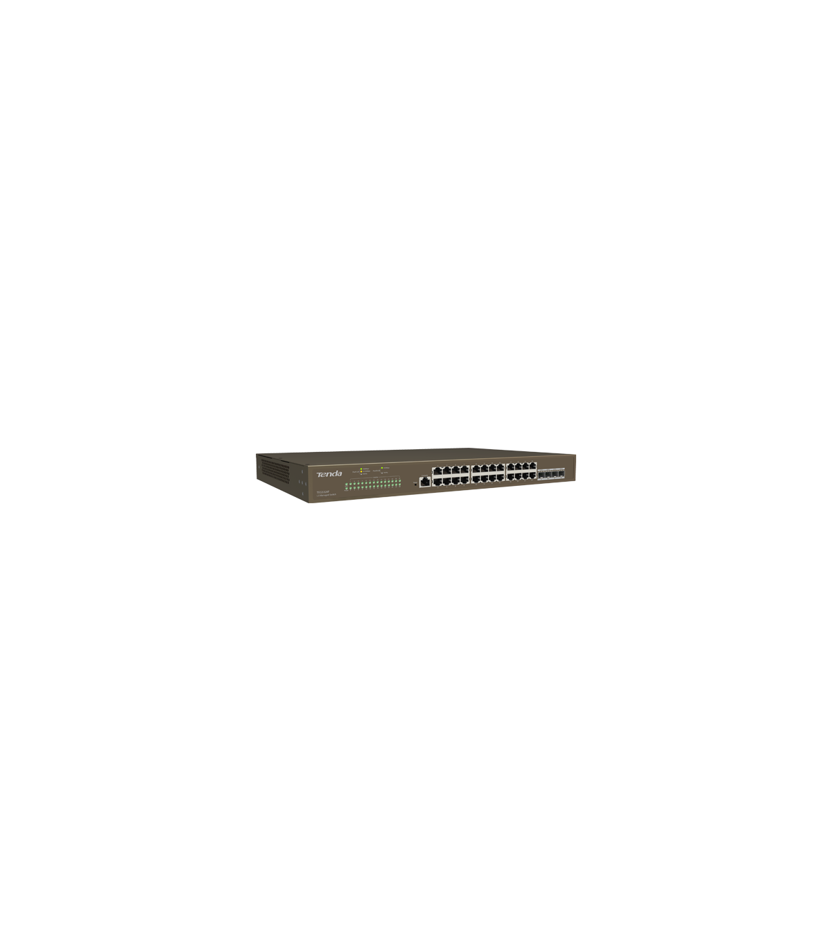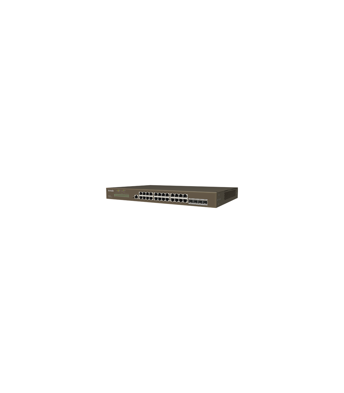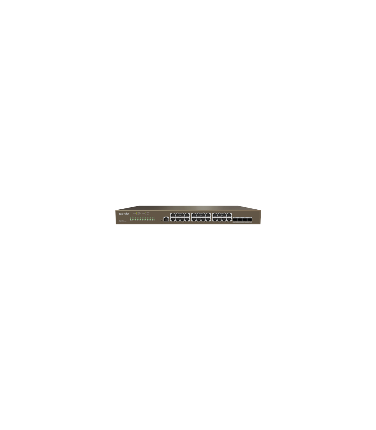 TND-TEG5328F este un switch Tenda cu management Layer-3, cu 24 porturi 10/100/1000 Mbps Ethernet si 4 porturi 1000 Mbps Base-x SFP. Construit pe baza unei structuri hardware si a unei platforme software inovative, switch-ul dispune de o capacitate mare de procesare, de multiple mecanisme de securitate si permite asigurarea cu usurinta a managementului si a mentenantei. Switch-ul raspunde nevoilor pentru un acces cu densitate mare de utilizatori si de inalta performanta, fiind solutia ideala ca nivel de agregare sau ca nivel de baza in retele medii si mari din corporatii si campusuri.