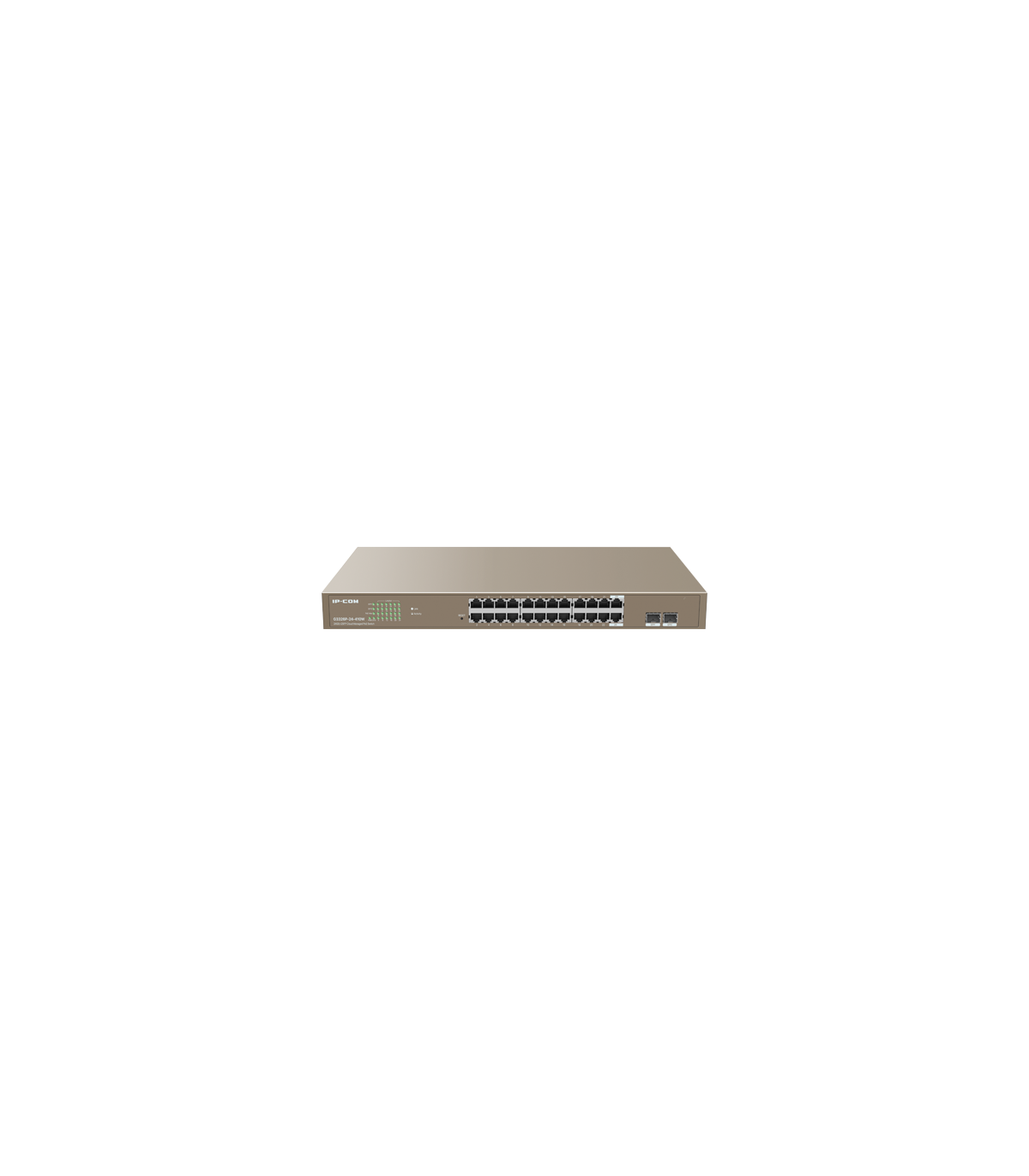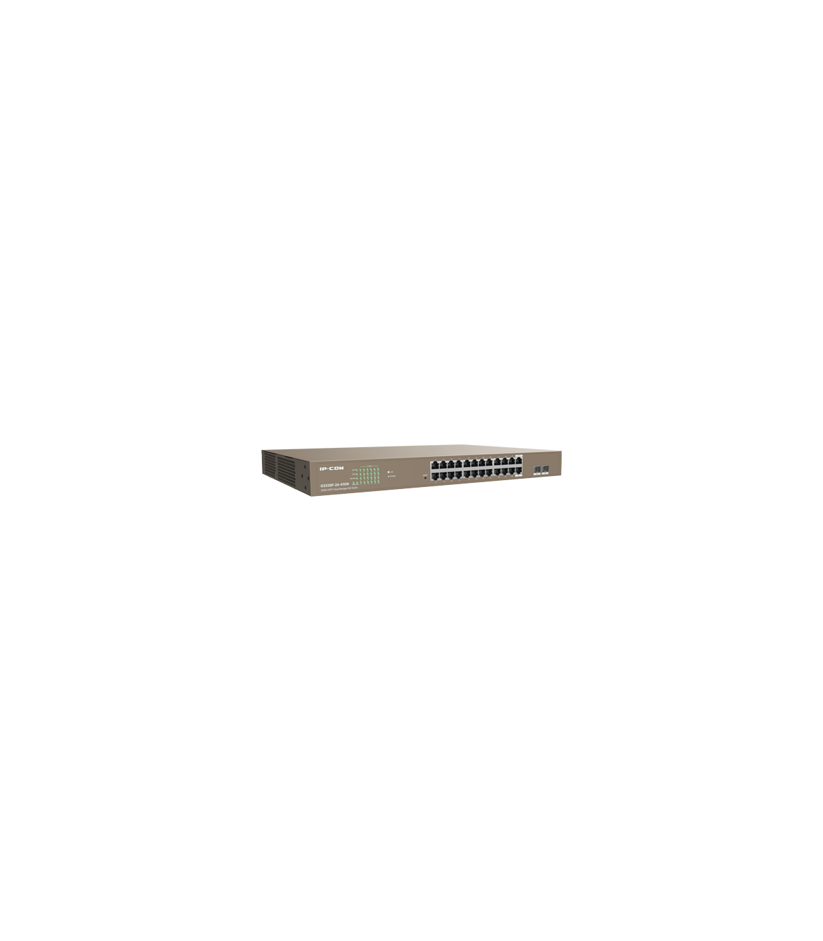 IP-COM G3326P-24-410W este un switch PoE inteligent cu management din cloud, proiectat de IP-COM. Acesta ofera 24 de porturi PoE+ Gigabit si 2 sloturi SFP la 1Gbps, suporta standardele IEEE 802.3af/at si poate identifica inteligent dispozitivele alimentate. Puterea maxima de iesire a unui singur port este de 30W, iar puterea intregului switch este de 370W. In conformitate cu IEEE 802.3x, control al fluxului full-duplex si half-duplex backpressure. Poate fi gestionat unificat de la distanta prin pltaforma web IP-COM ProFi Cloud, aplicatia IP-COM ProFi (iOS & Android), interfata locala web UI, facand intretinerea retelei mai eficienta, costurile post-vanzare mai mici, iar gestionarea si configurarea mai simple. Este o alegere ideala pentru intreprinderi mici si mijlocii, hoteluri, scoli, spitale, parcuri industriale etc.
