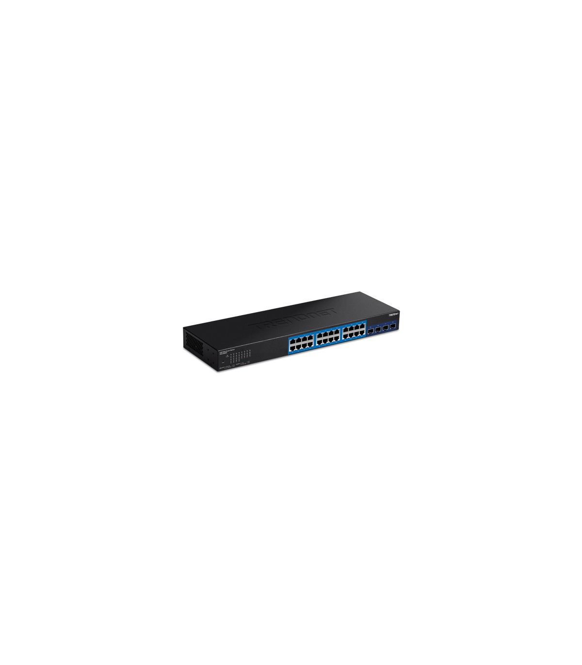 Switch-ul TRENDnet TEG-30284 are 24 de porturi Gigabit si 4 sloturi 10G SFP+ pentru uplink. Ofera o performanta ridicata, usurinta in utilizare si fiabilitate mare. Acest model ofera o solutie rentabila de uplink de mare viteza 10G unei retele SMB. Are o carcasa metalica robusta si poate fi montat in rack de 19”. Switch-ul are functii avansate de management L2+ printre care LACP, VLAN, QoS, SNMP, VoIP si o interfata web de management foarte intuitiva.