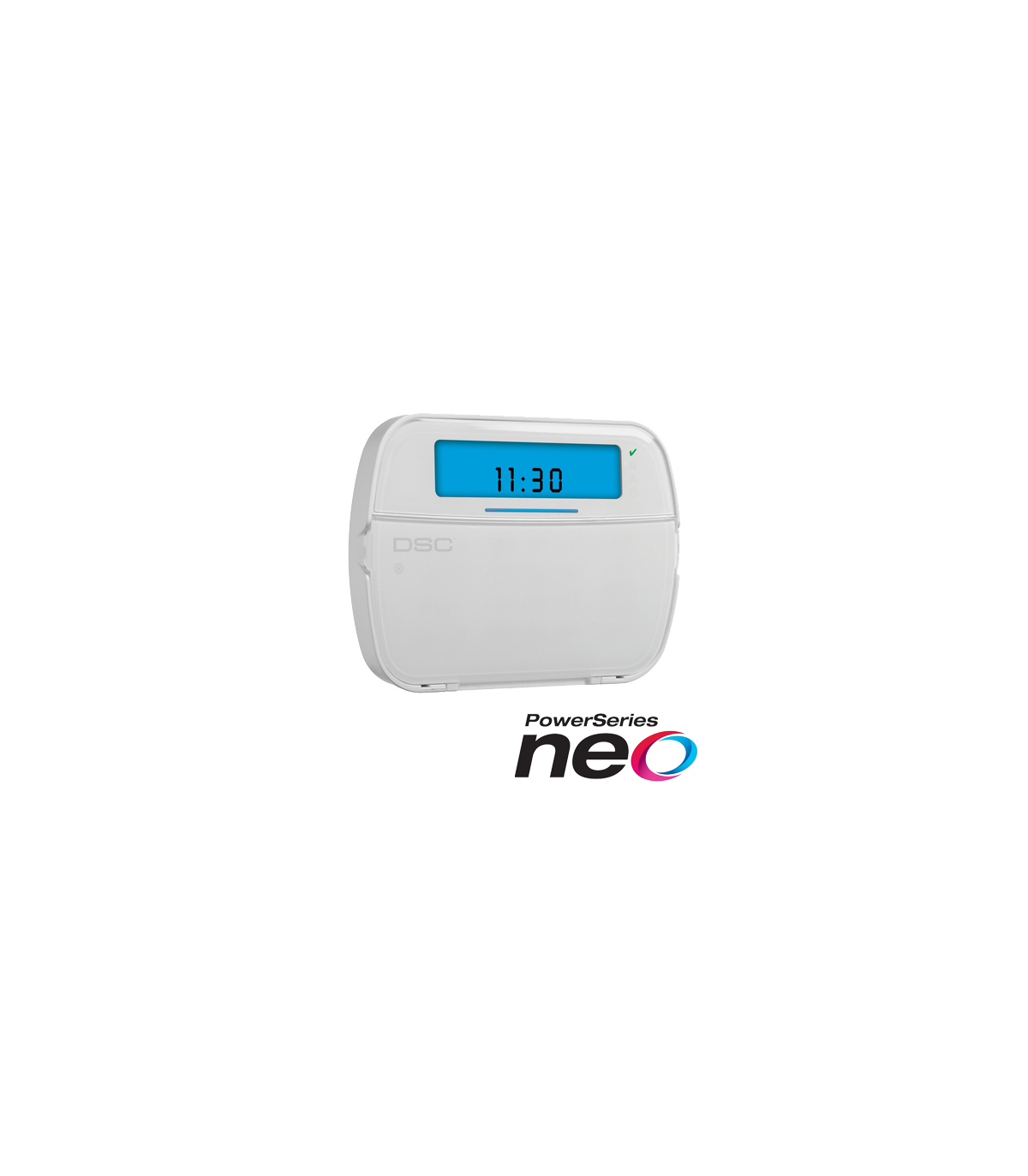 Tastatura LCD cu iconuri + modul wireless POWER G incorporat, cablata - DSC NEO POWER, pana la 128 de zone cablate sau wireless, 5 taste programabile, 1 zona pe tastatura (sau iesire PGM), 3 butoane urgenta (foc, medicala si panica), ajustare luminozitate LCD si buzzer, cablare pe 4 fire pe magistrala Corbus. Compatibila numai cu seria NEO.