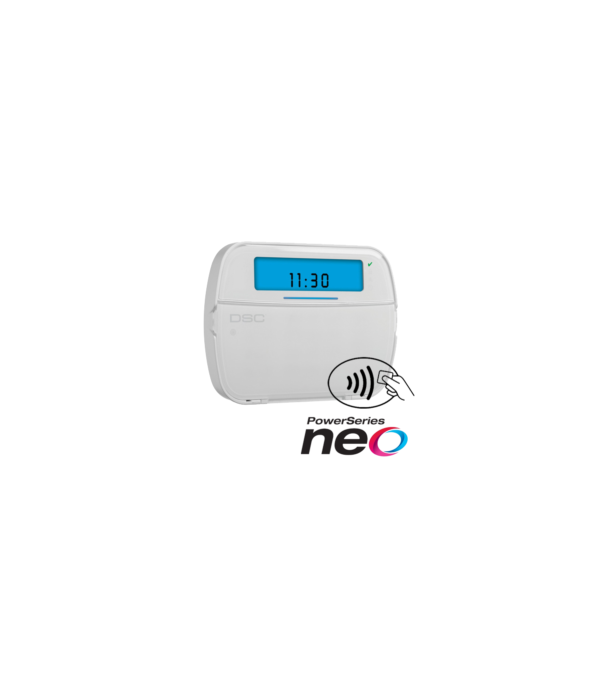Tastatura LCD cu iconuri + modul wireless POWER G incorporat - DSC NEO POWER, cititor de proximitate incorporat, cablata, pana la 128 de zone pe fir sau wireless, 5 taste programabile, 1 terminal programabil intrare de zona sau iesire PGM, butoane urgenta (foc, medicala si panica), ajustare luminozitate si buzzer, cablare pe 4 fire pe magistrala Corbus. Compatibila numai cu seria NEO.