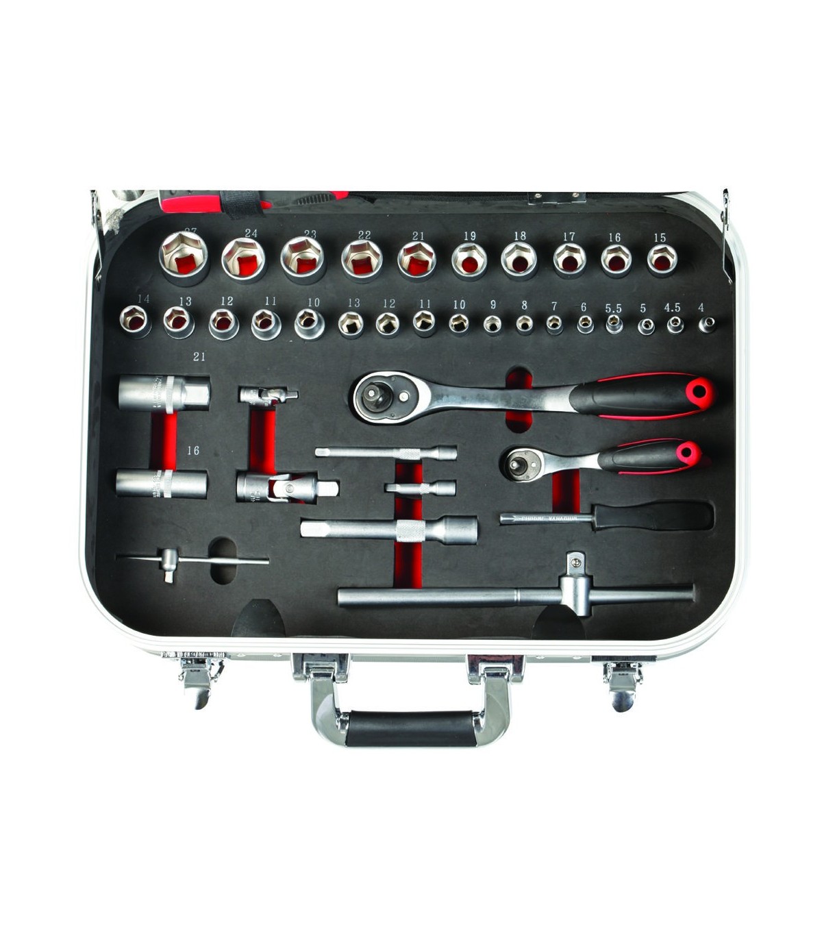 Trusă generală de scule compusă din 153 de piese livrate într-o cutie robustă de scule.